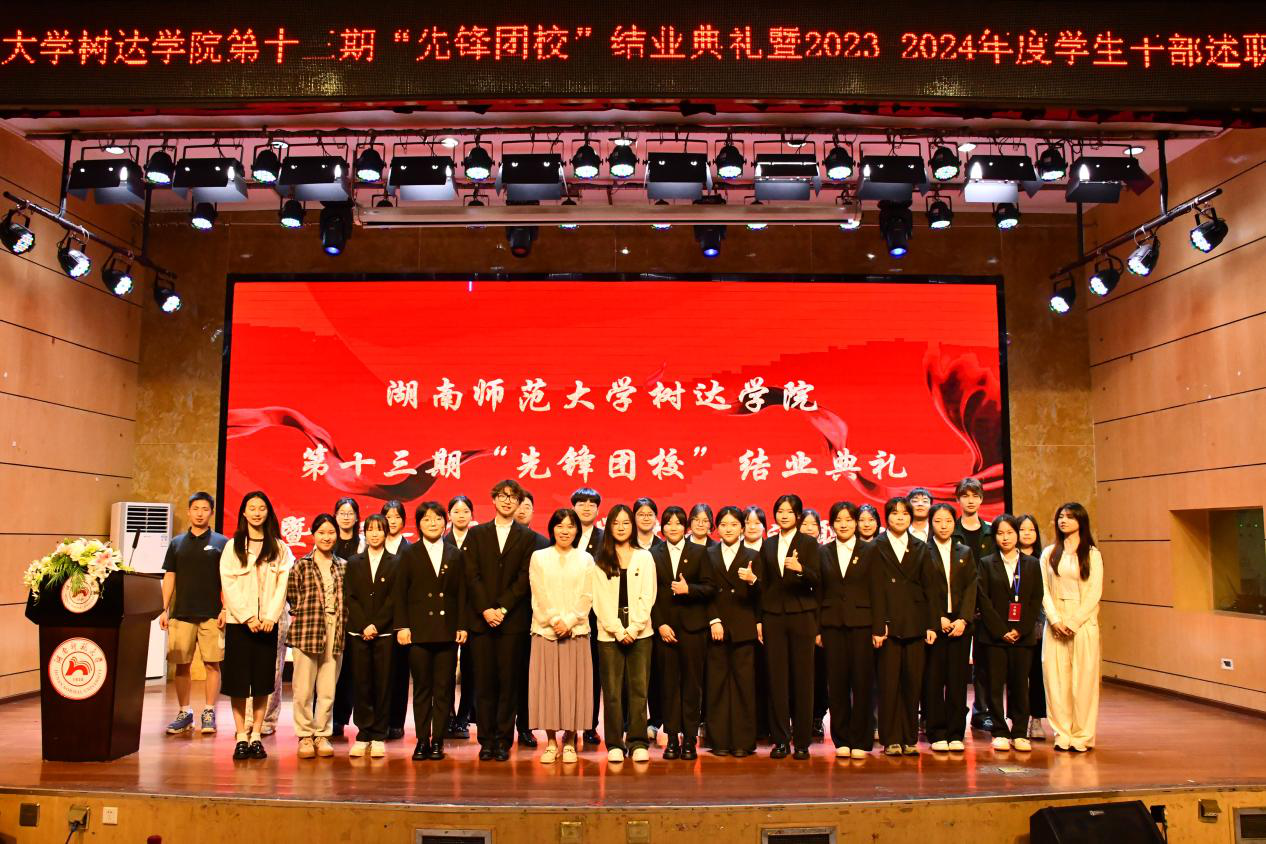 (记者 刘紫琼 史沁灵 陈子怡)4月18日下午,我院团委在树达楼113报告厅开展第十三期“先锋团校”结业典礼暨2023-2024年度学生干部述职大会。院团委书记胡蓉和各系团总支书记出席活动。活动由院团委青年发展工作部副部长刘紫琼主持。