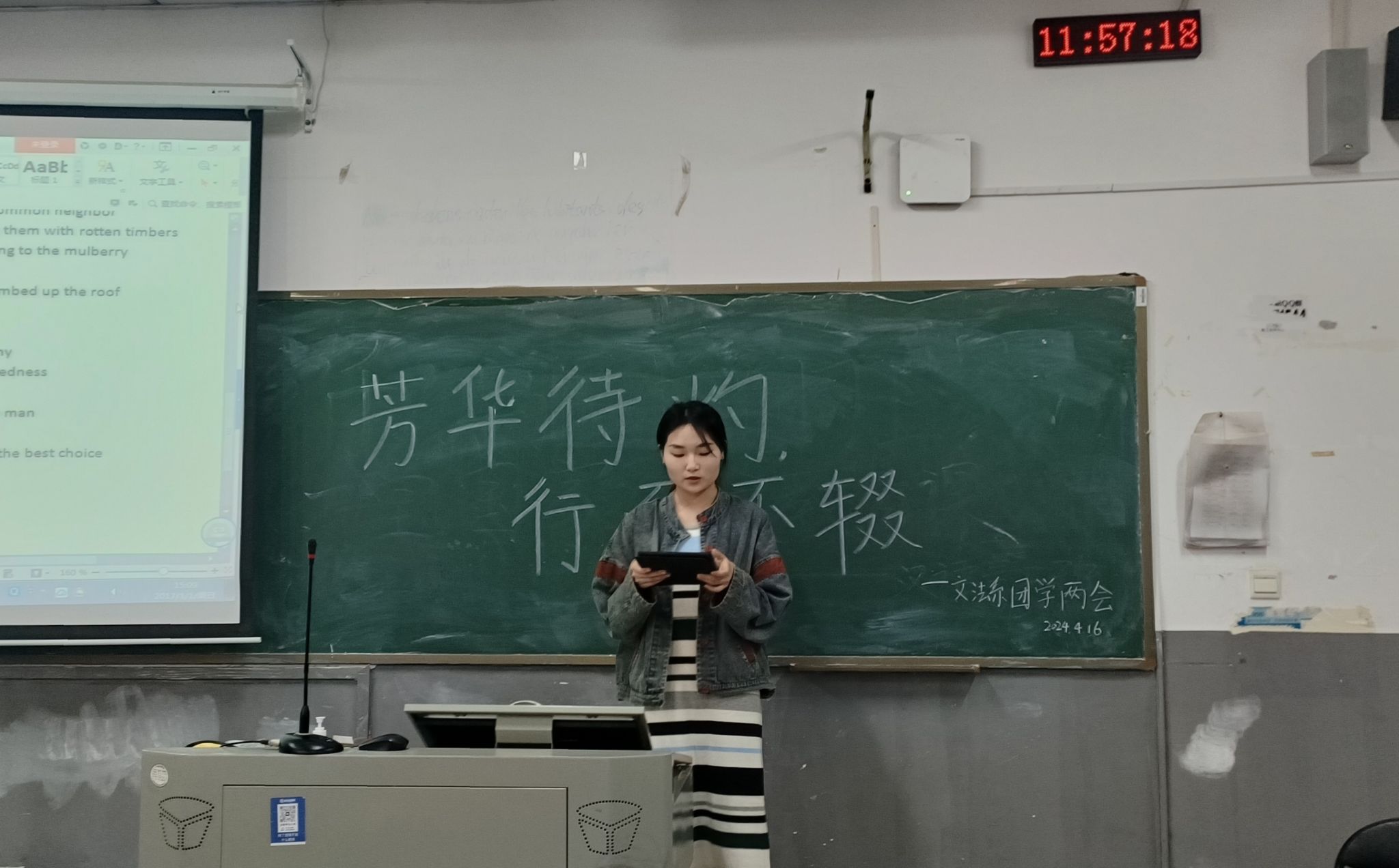 (记者 辜慧敏 尹诗茵 刘婉婷)4月16日中午,我院文法系团学两会在树达楼503教室召开以“芳华待灼,行而不辍”为主题的第六次例会。会议由文法系团总支社会实践部副部长刘文琪主持。