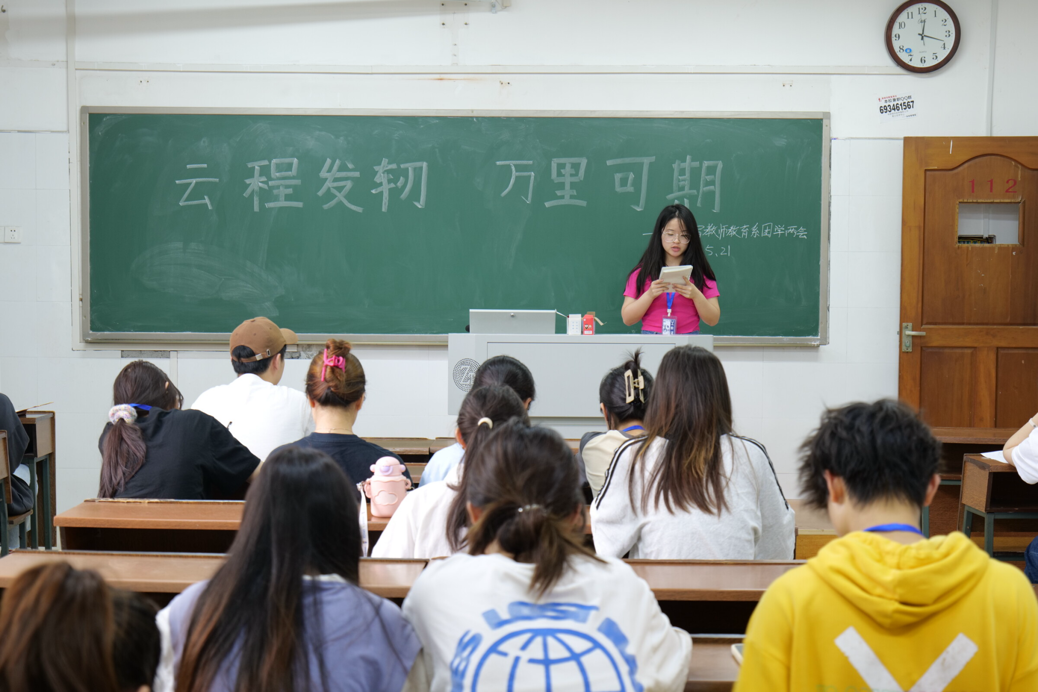 (记者 陈欣玉 张铠 李皖湘)5月21日中午,我院教师教育系团学两会于达善楼112教室召开以“云程发轫,万里可期”为主题的第十次例会。会议由社会实践部副部长欧诗薇主持。