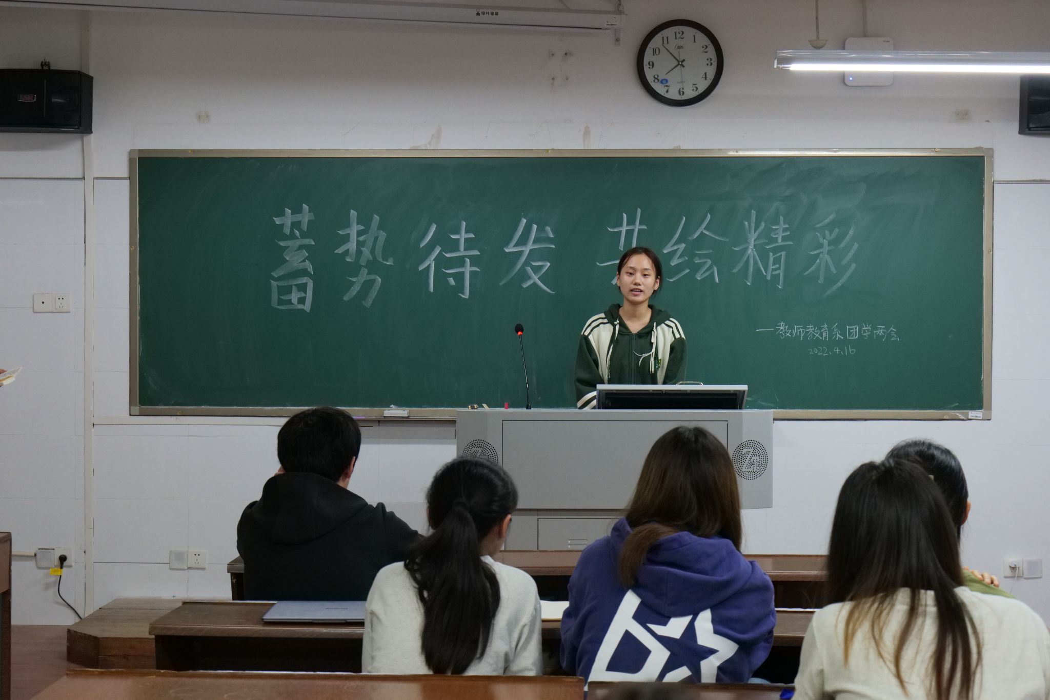 (记者 李皖湘 陈欣玉 张铠)4月16日晚,我院教师教育系团学两会于达善楼204教室开展以“蓄势待发,共绘精彩”为主题的第六次例会。会议由团总支宣传部副部长张铠主持。