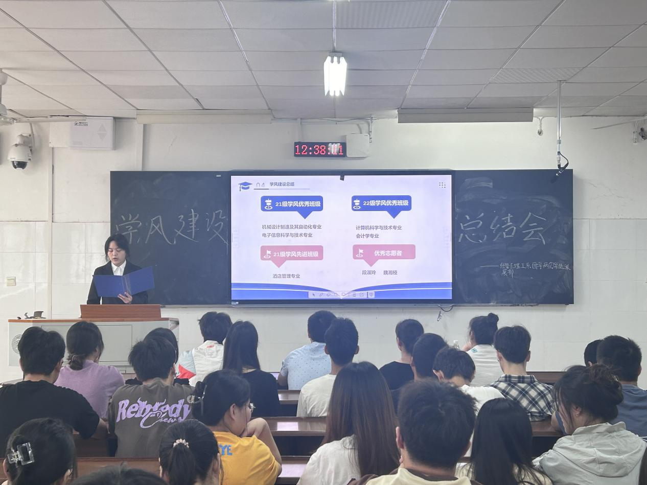 2022级机械设计制造及其自动化专业学习委员胡鑫辉和学风建设督查小组志愿者段淑玲分别就本学期的管理工作进行了总结。他们表示,各班班委要做好桥梁作用,增进同学与老师间的沟通,学风建设不是一个人的任务,而是需要全体同学的努力,希望同学们能够携手共进,共同营造良好的班风学风。
