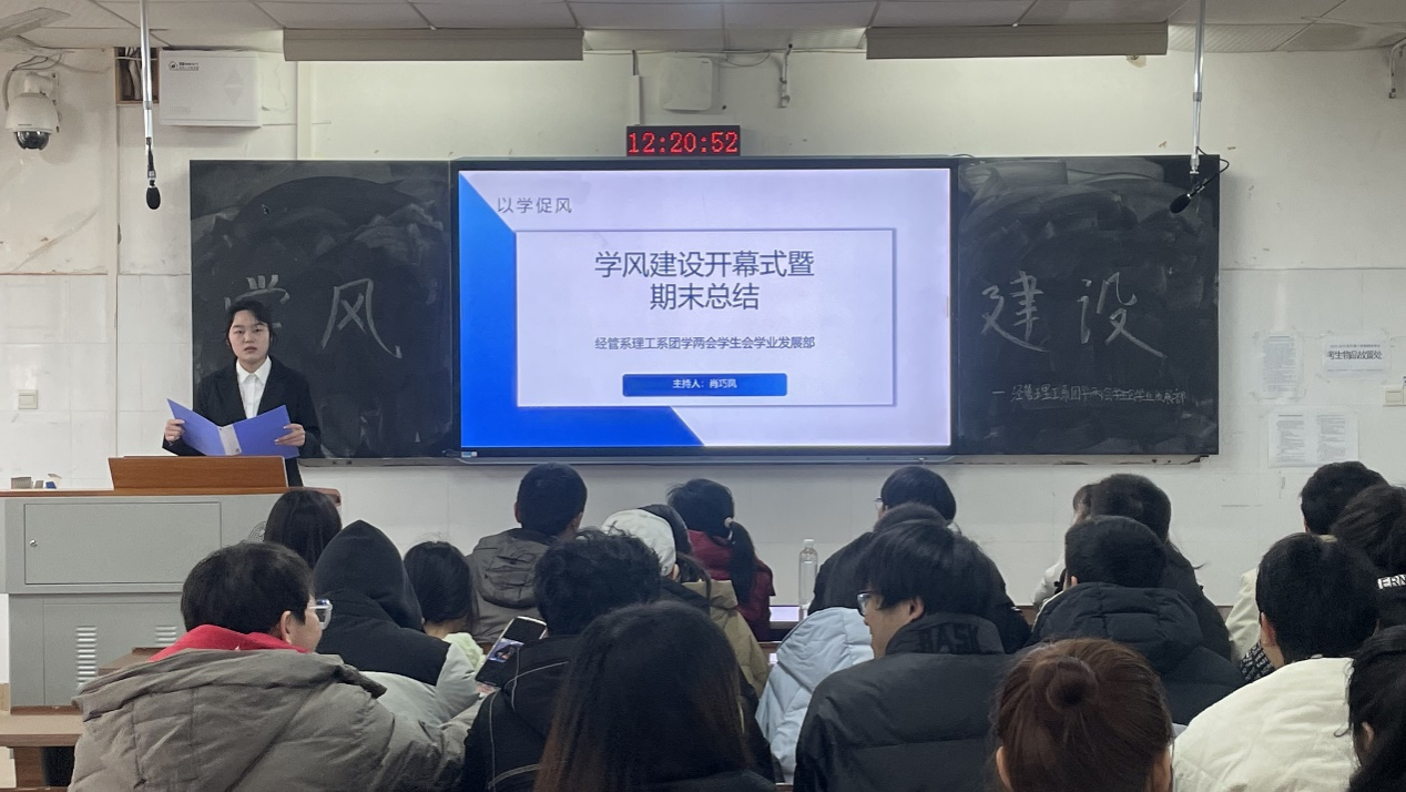 (记者 肖巧凤 王俊峰 粟思瑾)3月6日中午,我院经管系、理工系团学两会学业发展部在树达楼106教室举行学风建设开幕式暨期末总结。理工系团总支书记朱继来、经管系系教务办负责人谭永清出席活动。活动由经管系、理工系学生会学业发展部成员肖巧凤主持。
