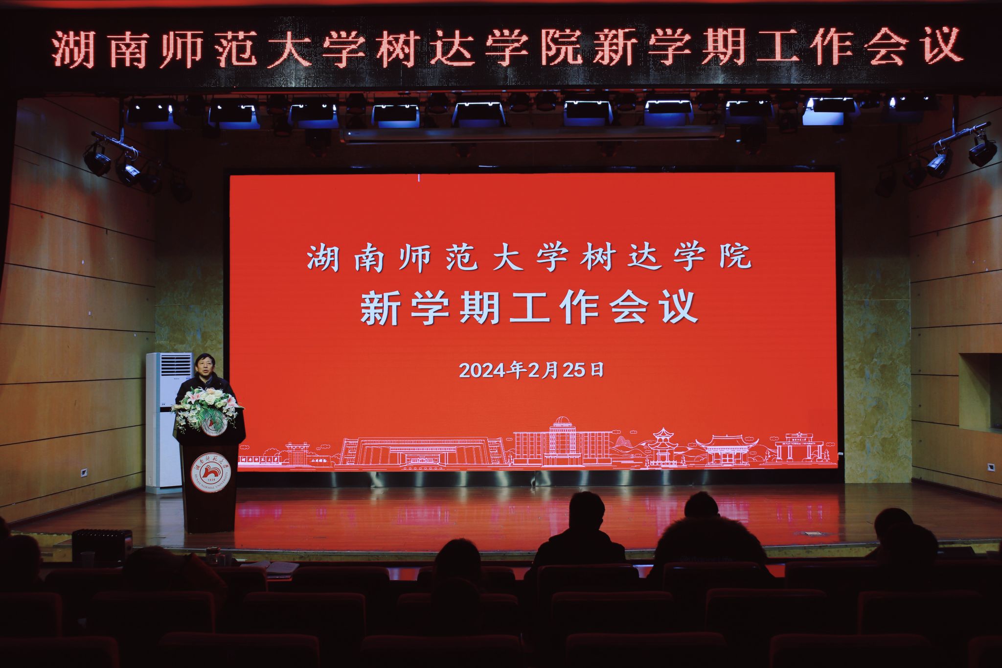 院长向坚持作了题为《龙跃新程逐梦翔 砥砺奋进谱新章》的新学期工作报告。他从开阔格局强党建、担纲重任强团建、凝聚团队强合力、完善制度提效能、蹄疾步稳推教改,携手并肩克难事、心系师生办实事,天道酬勤有喜事、凝聚共识谋大事等九个方面对学院2023年工作进行总结,并用六个“新”对学院新学期工作作了具体部署,一是党建工作要扩宽新视野;二是校园建设要跨越新高度;三是管理信息化展现新作为;四是人才培养质量要攀升新高度;五是教育教学改革要取得新成效;六是校园安全稳定要再上新台阶。他说,我们要感谢这个伟大的时代,更要珍惜干事创业的奋斗年华,希望大家铆足干劲、龙跃新程,生逢盛世不负盛世,生逢其时奋斗其时,共创更加美好的未来。