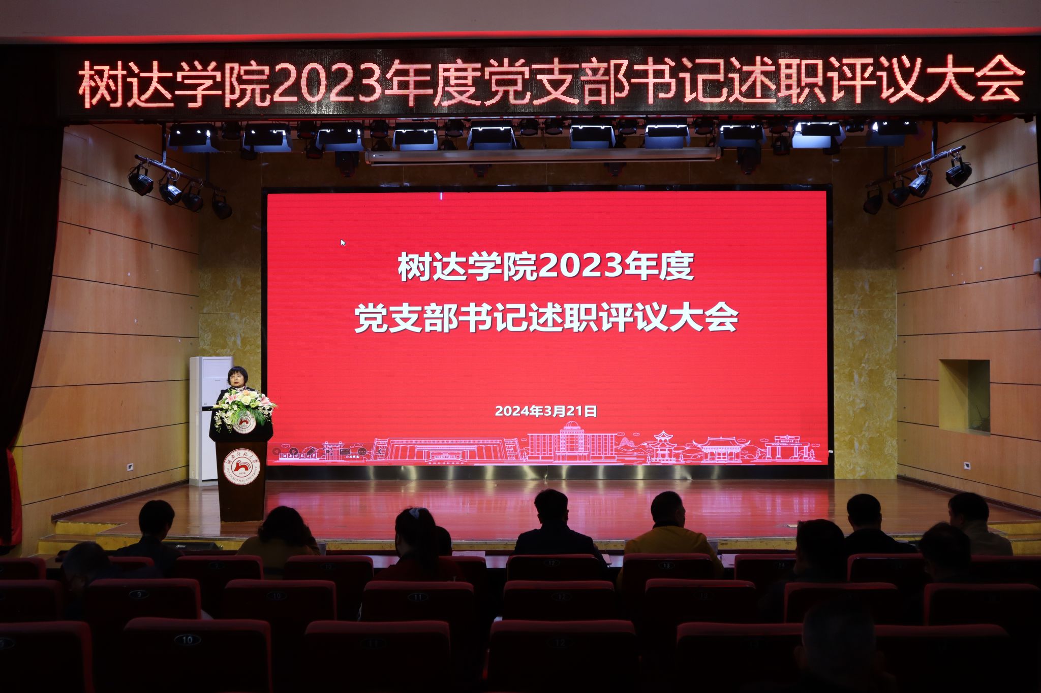院长向坚持代表学院向辛勤工作在基层一线的各位党支部书记和广大党员表示衷心感谢。他说,过去一年,学院各党支部和广大党员紧紧团结在学院党委周围,以习近平新时代中国特色社会主义思想为指导,锚定"和谐树达,平安树达,活力树达,幸福树达"的美好愿景,根据"凡是有利于学院发展的事情,凡是有利于教职工成长的事情,凡是有利于学生培养的事情,都全力以赴去做"的办事原则,深入推进各项工作,取得了较好成绩。目前,学院处于转设的关键时期,还面临许多困难和挑战,希望各党支部书记以高度的政治责任感和历史使命感,认真履行职责,勇于担当作为,为推进学院各项工作落实落细作出应有贡献,让基层党组织成为学院转设期间各项工作最坚实的支撑,不断推动学院各项事业发展再上新台阶。