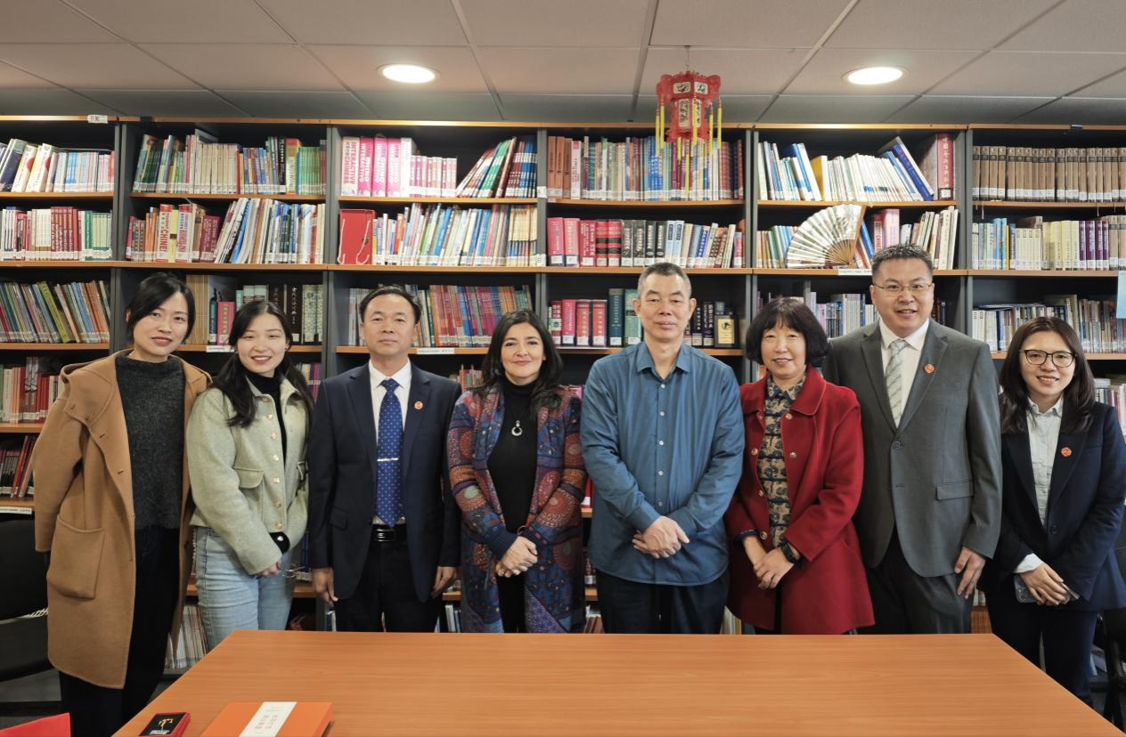 在外访问期间,代表团还访问了智利圣托马斯大学孔子学院,与孔院外方院长莉莉安、中方院长鲁正凤教授进行了深入而亲切的交谈。在会谈中,代表团详细了解了圣托马斯大学孔院在当地的运作经验,蒋新苗介绍了我校办学历史、来华奖学金项目以及海外孔院的建设情况,并表示,希望通过此次访问互学互鉴,与圣托马斯大学孔院在教师培训、合作办学、国际中文教育等方面开展深入合作。
