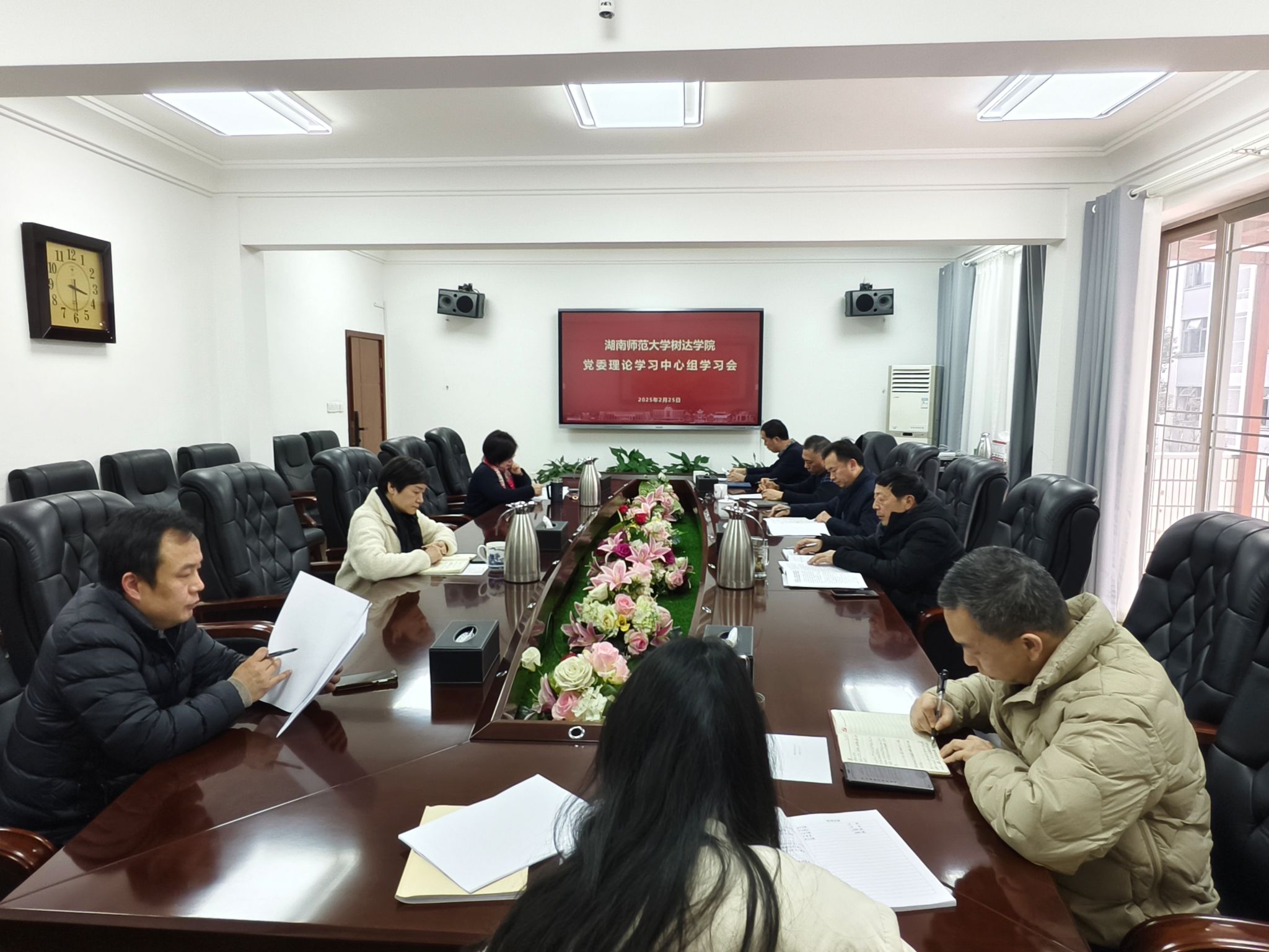 (记者 胡穗源 刘紫琼)2月25日下午,学院党委理论学习中心组开展2024年度民主生活会会前集中学习研讨,传达学习习近平总书记在中央政治局民主生活会和二十届中央纪委四次全会上的重要讲话精神、中国共产党湖南省第十二届委员会第七次全体会议决议精神,重点学习习近平总书记关于党的建设的重要思想、关于健全全面从严治党体系的重要论述。全体院领导参加学习探讨。院党委书记李正益主持会议。