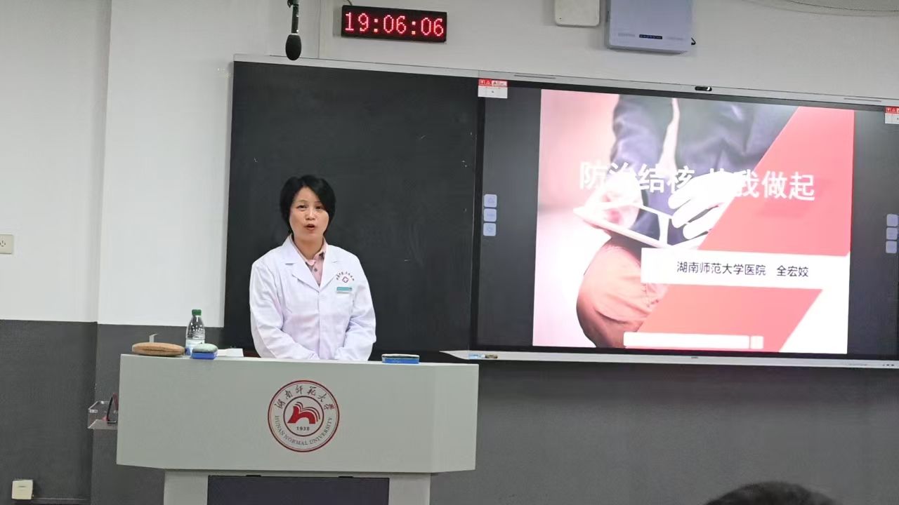 (通讯员 刘婷 蒋雯 任浩楠)3月19日晚上,长沙市疾病预防控制中心熊姿、校医院全宏姣分别在树达楼315、415教室开展了以“结核病的科学认知与防控”为主题的讲座。