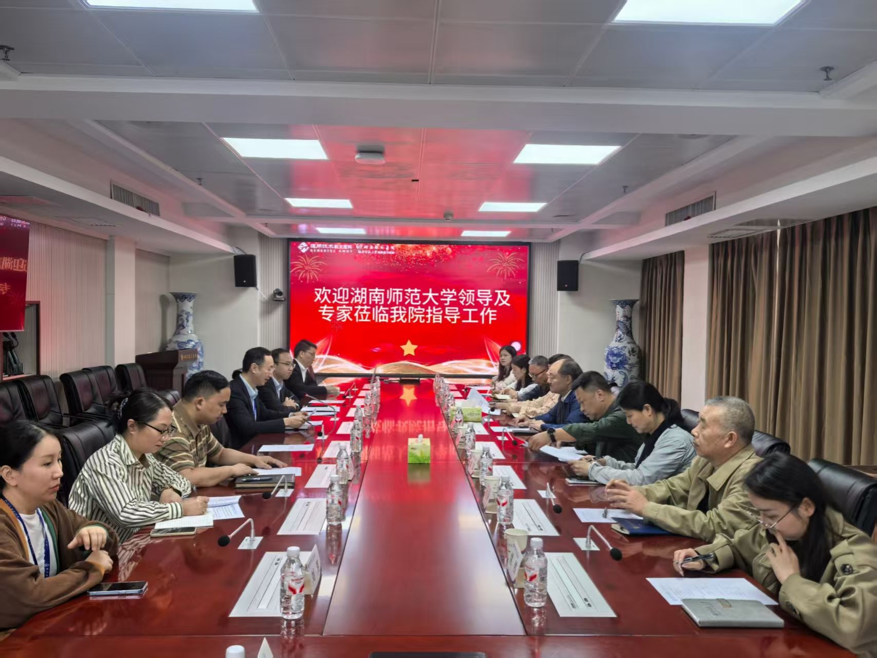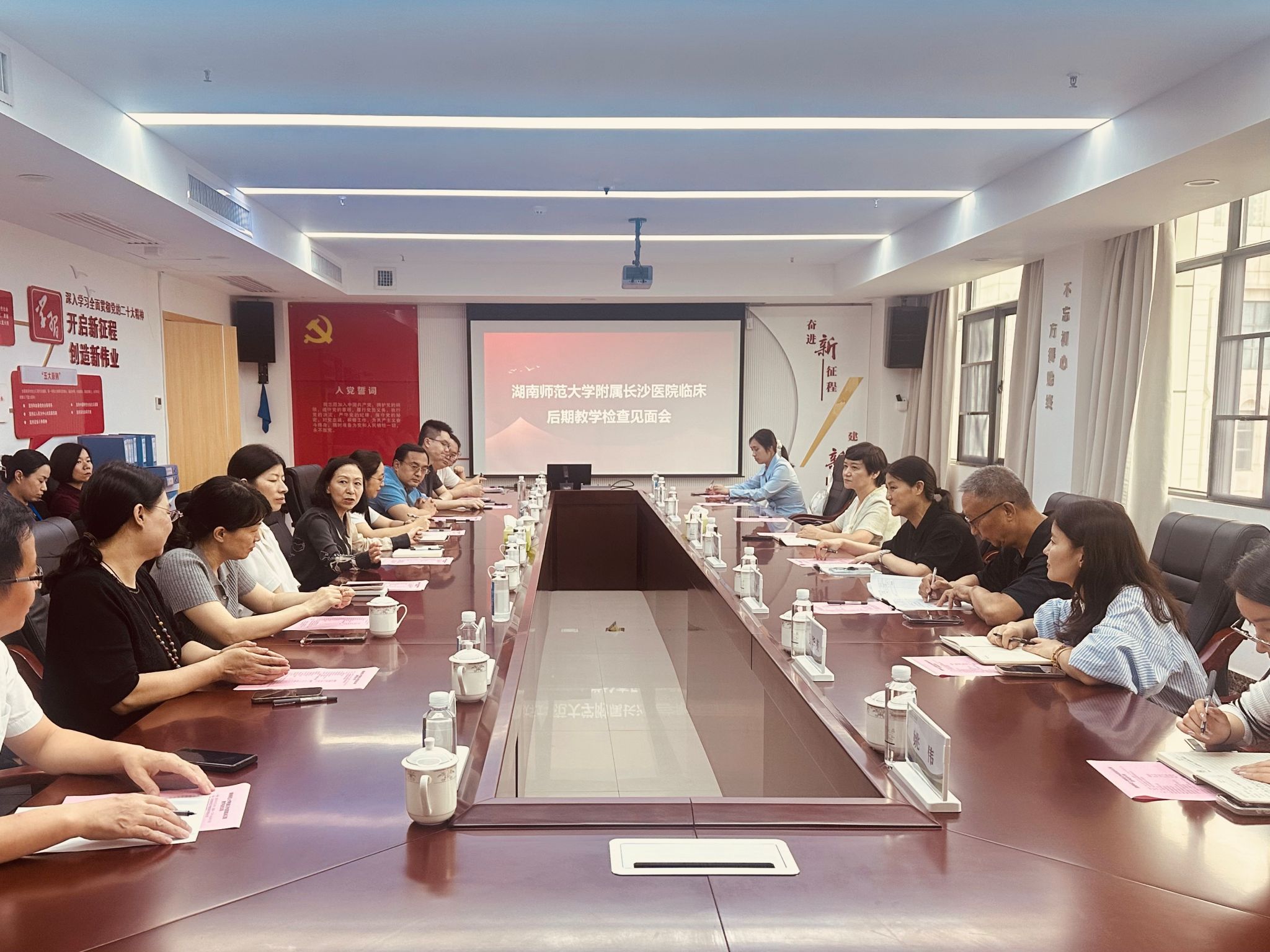 湖南航天医院党委副书记吴浩,长沙市四医院(我校附属长沙医院)副院长戴朝晖等医院领导对蔡炳华一行表示热烈欢迎。蔡炳华希望以此次教学检查契机,进一步加强校企合作基础。双方一致认同,将继续秉承“资源共享、优势互补、共同发展”的原则,在课程建设、师资互聘、临床实践、科研创新等领域开展更深层次的合作。