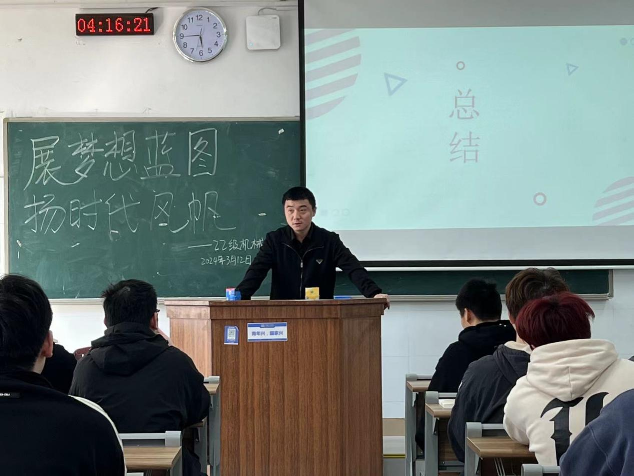 (记者 郑伊婷 刘艺杰)3月12日上午,我院理工系2022级机械设计制造及其自动化专业于树达楼108教室开展以“展梦想蓝图,扬时代风帆”为主题的班会。理工系辅导员朱继来出席会议。会议由团支部书记李嘉慧主持。
