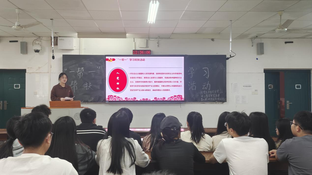 (记者 杨峥 高陈成 刘艺杰)4月22日中午,我院经管系、理工系学生党支部第41期预备党员与第76期入党积极分子在树达楼106教室开展“一帮一”学习帮扶活动。活动由预备党员李香主持。