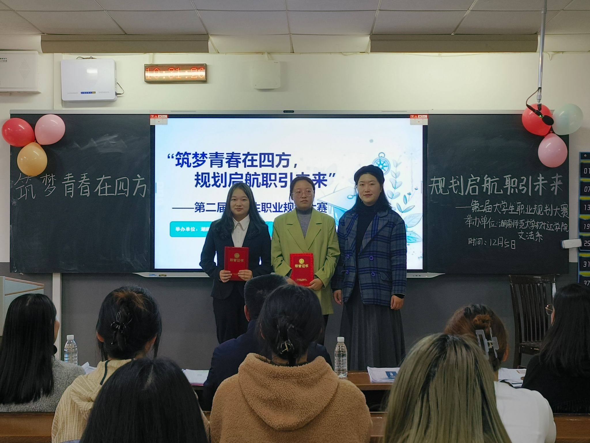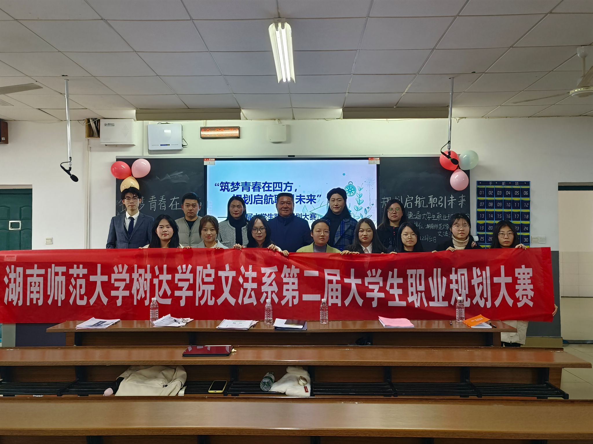 (通讯员 康世强 刘婉婷 冯思怡)12月5日上午,我院文法系团学两会在树达楼307教室开展以“筑梦青春在四方,规划启航职引未来”为主题的第二届大学生职业规划大赛。文法系党总支书记兼系主任李伶俐、文法系团总支书记彭娇、文法系学生第一党支部书记肖灿、文法系辅导员黄江霞、侯祎担任评委。活动由2022级播音与主持艺术专业彭铭意主持。
