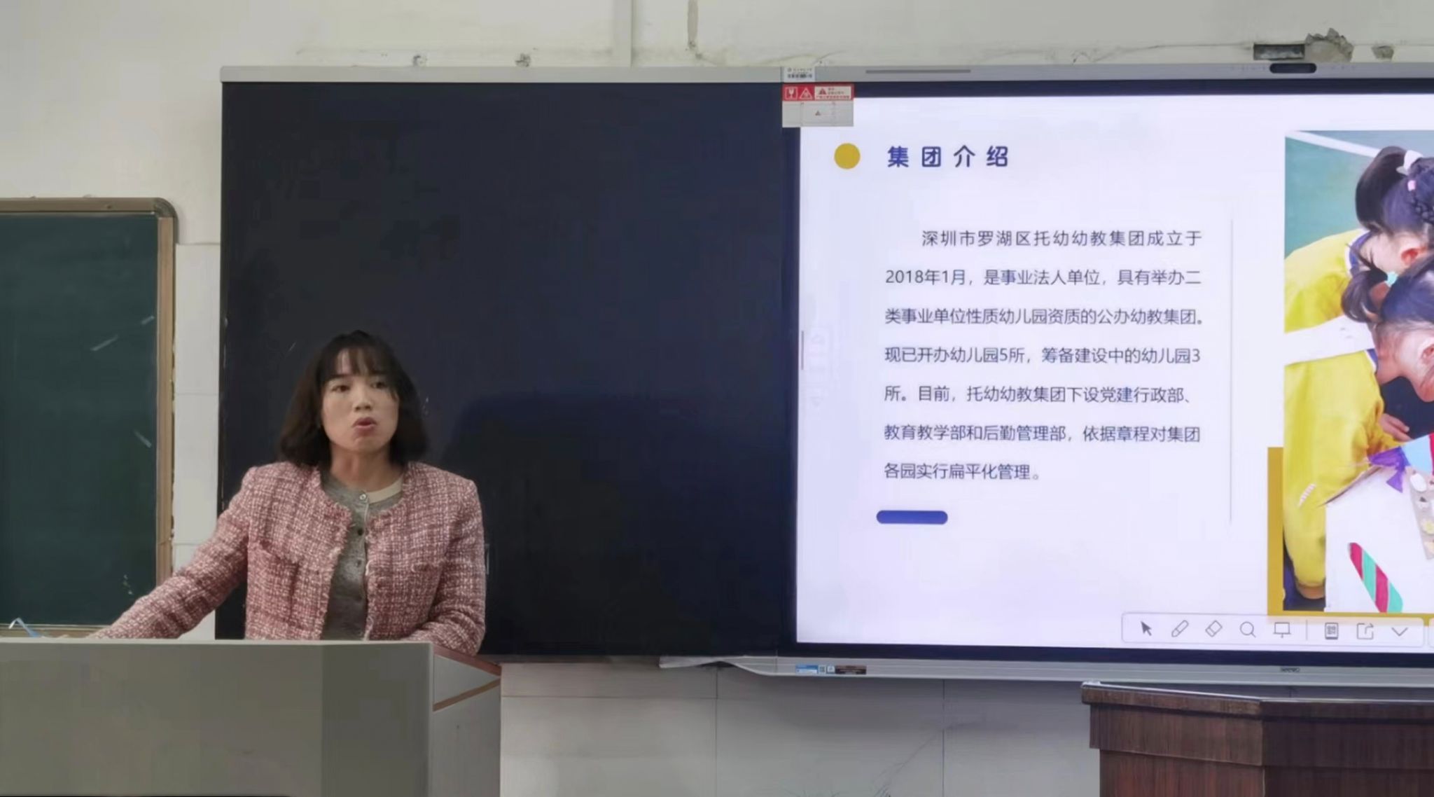 深圳市罗湖区托幼幼教集团负责人刘熹漫详细介绍了集团的发展历程、岗位需求以及福利待遇等情况。她表示,深圳市罗湖区托幼幼教集团属于深圳市公办幼教集团,致力于提供优质普惠学前教育。集团秉持“尊重、合作、发展、创新”的宗旨,致力于为幼儿提供全面发展的教育环境,同时注重教师的专业成长和职业发展,希望同学们能够深入了解单位情况,积极求职。