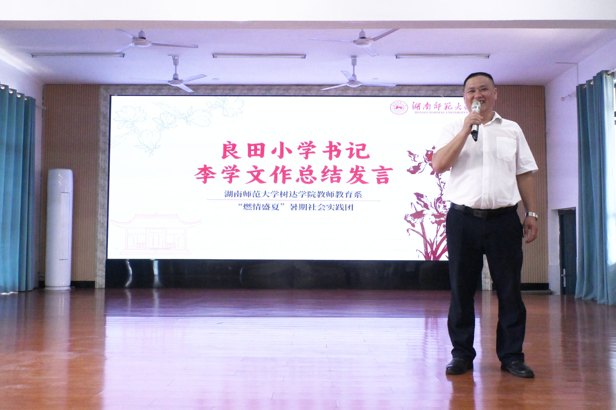 (通讯员 曾婷 许海微 陈琼芝)7月7日上午,我院教师教育系三下乡“燃情盛夏,携手教途”暑期社会实践团在郴州市苏仙区良田镇良田学校召开主题班会暨开班典礼。良田学校党支部书记李学文、实践团指导老师刘佳出席会议。会议由实践团副队长孙妍主持。