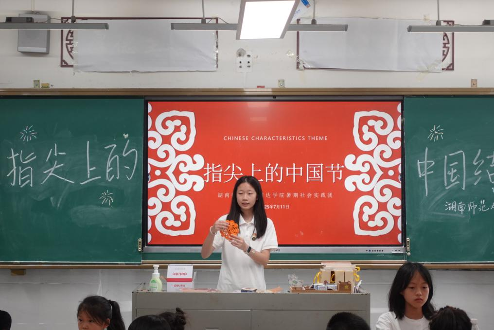 (通讯员 向晶 肖颖如)7月11日下午,我院“乡遇小河”暑期社会实践团在浏阳市小河乡开展“指尖上的中国结”特色课程。实践团成员罗怡婧担任课程主讲人。