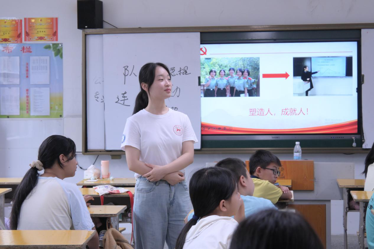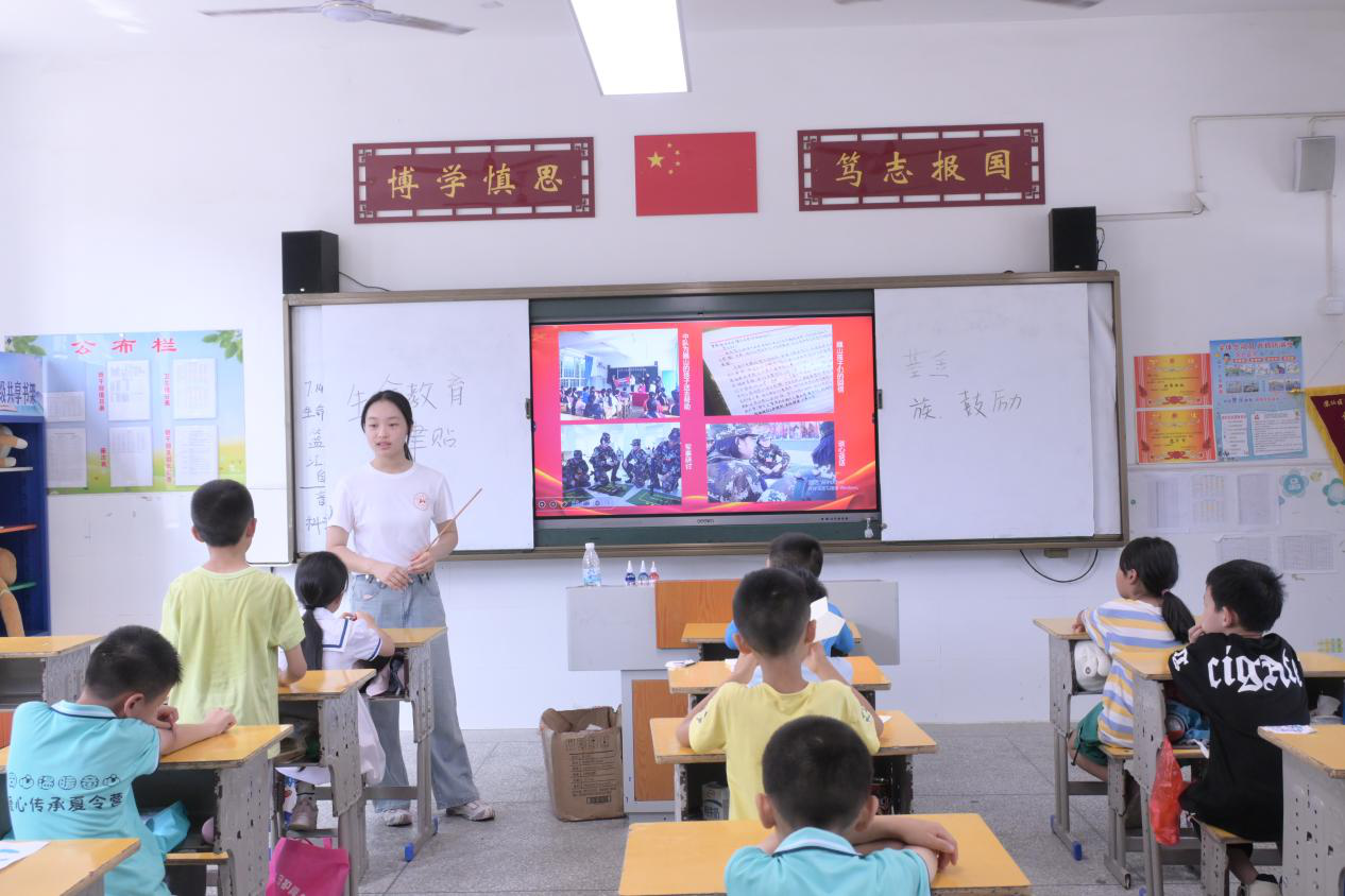 (通讯员 许海微 彭璟怡 曾婷)7月14日上午,我院教师教育系“燃情盛夏”暑期社会实践团在良田学校开展“从军徽到队徽,做党的红孩子”红色论坛活动。支教组成员彭晶晶担任主讲人。