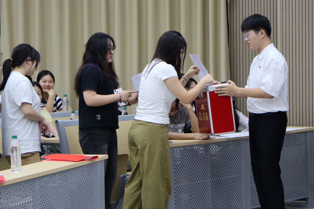 胡蓉宣布选举结果。她对新一届团学组织委员寄予厚望,要求做到认真履行职责,充分发挥自身的能力,积极团结和带领学院全体团员青年,为推动学院团学工作再上新台阶、实现更高水平的发展而不懈努力,奋斗前行。