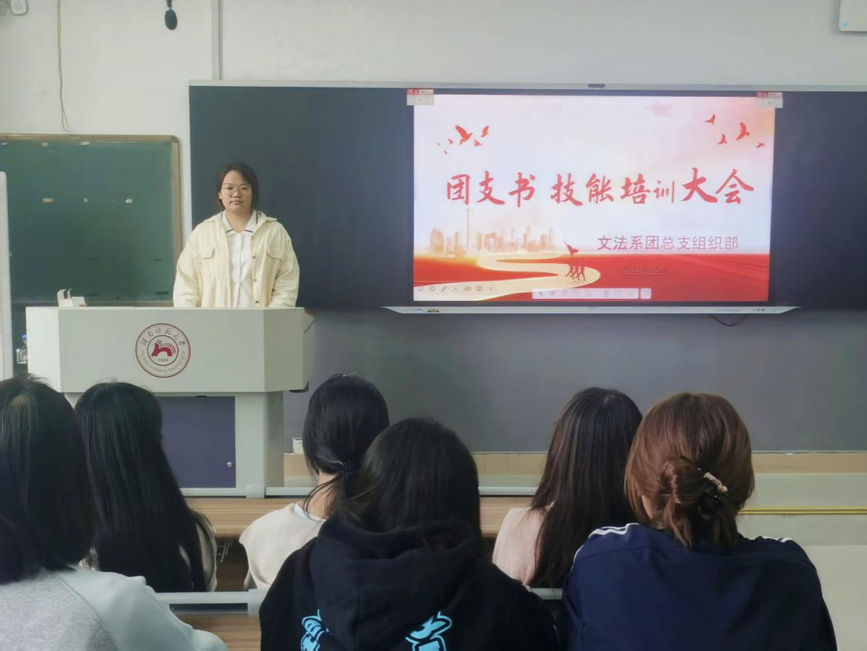 (通讯员 王俊楠 樊依冰 邓婷芳)10月14日中午,我院文法系团总支组织部在树达楼503教室召开团支书培训会,会议由文法系团总支组织部部长王俊楠主持。