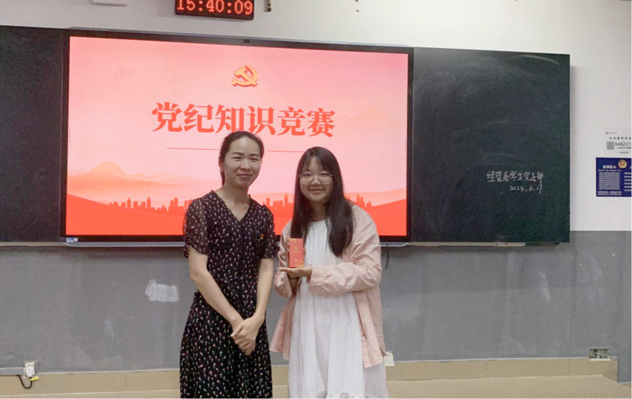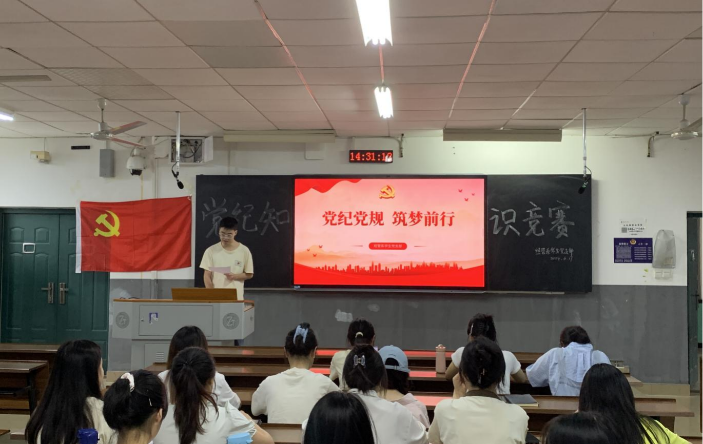 (记者 吴雨霏 李青云 刘艺杰)6月17日下午,我院经管系学生党支部在树达楼406教室开展党纪知识竞赛。经管系学生党支部第一书记王贞出席活动。
