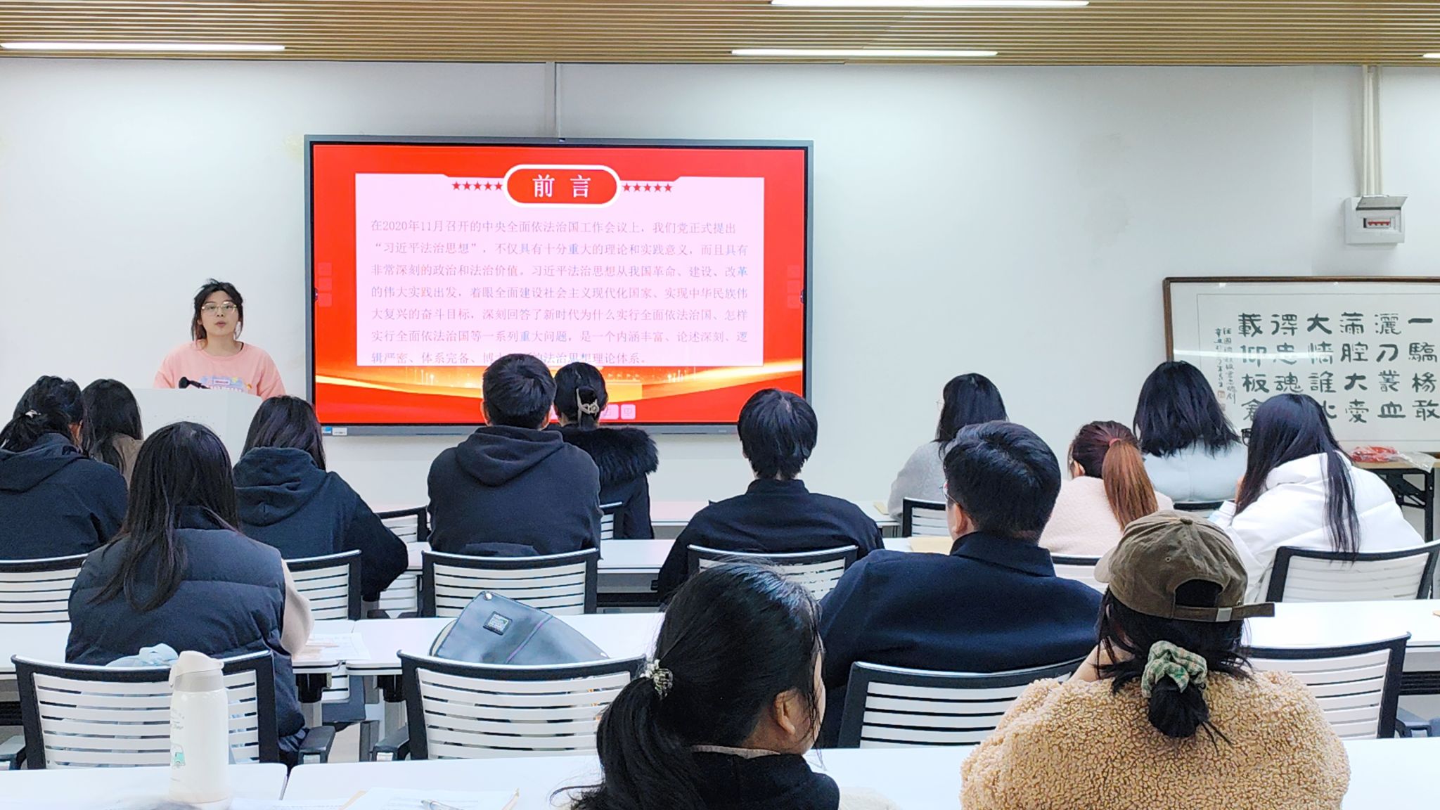 教师教育系学生第三党支部书记孙一心作总结发言。她强调,各党员同志要认真学习贯彻习近平法治思想,积极参加模拟法庭、法律辩论赛或与法律相关的课外活动,向群众宣传法律知识,营造尊法、学法、懂法、守法、用法的良好氛围。